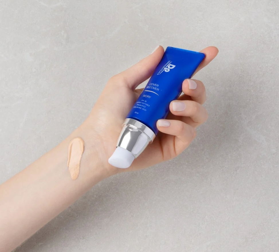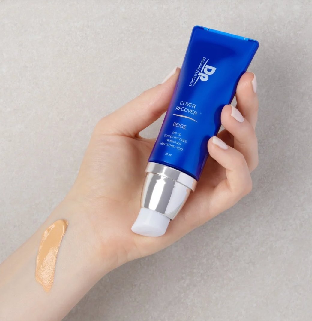 DP DERMACEUTICALS COVER RECOVER™- meikkivoiteen sisältämät lääkeaineet auttavat ihosi palautumisessa nuorentamistoimenpiteiden, kuten mikroneulauksen jälkeen peittäen samalla mahdollisen punoituksen tai ärsytyksen.